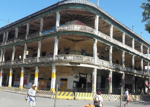 Mientra tanto, el viejo inmuble sigue deteriorándose, solo se han colocado letretos con la imagen de lo que iba a hacer la restauración. Fotos: Diómedes Sánchez.