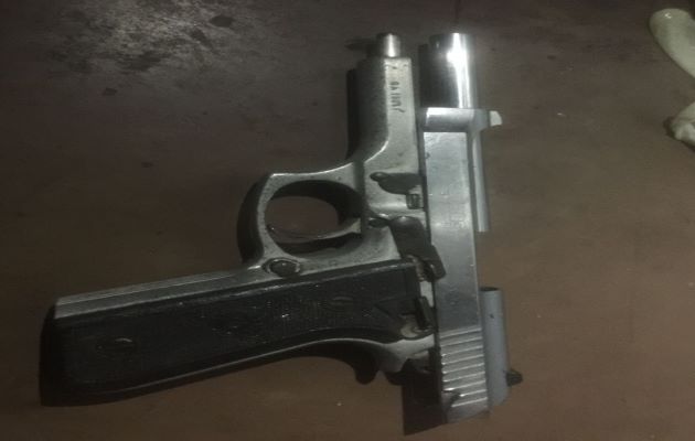 Al ser aprehendido y efectuar un allanamiento para ubicar el objeto lanzado, se observó que se trataba de una pistola 9 milímetros.