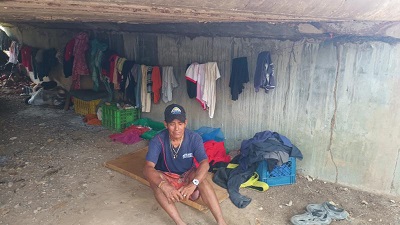 Gumercindo Santos enfatizó que reside debajo de la alcantarilla en calle Quinta Final, porque no cuenta con una vivienda digna o decorosa para él y sus familiares, señalando que ninguna autoridad del distrito se ha acercado a el para resolver este problema.