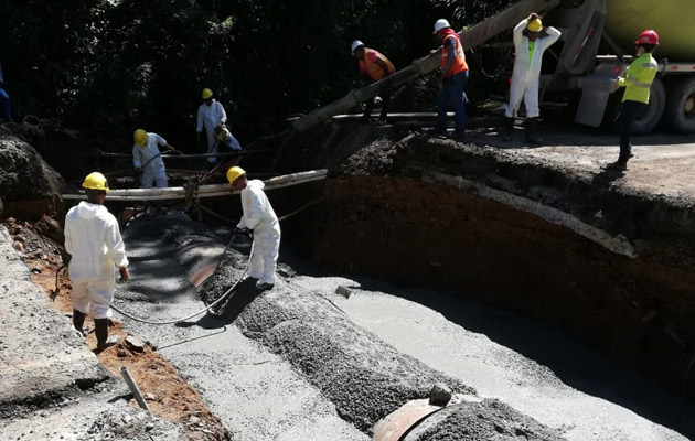 Este sábado, la empresa Consorcio Loma Cová se concentró en realizar la instalación de las nuevas tuberías en la vía que conduce del interior del país hacia la ciudad capital. Una operación similar se deberá realizar en los dos carriles provenientes de la ciudad capital