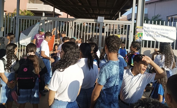 Todo inició a primera hora, cuando los estudiantes llegaron a sus labores, pero la dirigencia de los padres de familia había cerrado las puertas con candado, impidiendo el acceso a la jornada escolar.