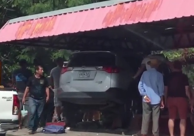 Pierde el control y queda incrustado en una parada de buses en San Carlos