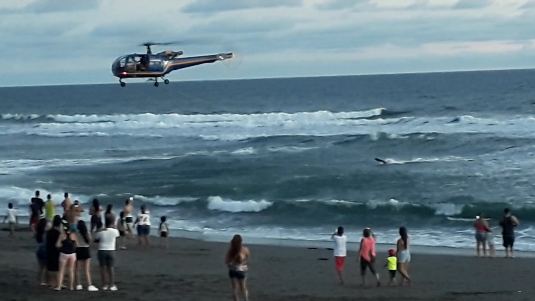 Una vez se logra el rescate, los bañistas que estaban en la playa, aplaudieron la acción del piloto del helicóptero y la de un surfista, quien intentaba sacar al joven arrastrado por las olas.