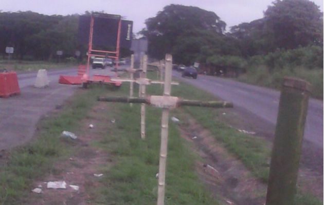 Un grupo de personas procedió en la mañana de hoy lunes a colocar 69 cruces en la isleta central de la vía Interamericana a la altura del distrtito de Boquerón con el de Bugaba, para rechazar las 69 hidroeléctricas que hay en los ríos en la provincia de Chiriquí.