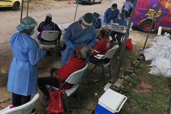Personal de salud instaló un puesto de hisopado en el corregimiento de Cativá, donde se detectó el primer caso de la variante delta en Colón. Foto: Cortesía Minsa