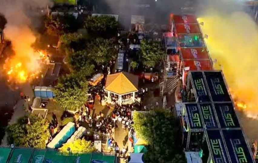 Cuando ambas tunas se encontraron en el parque, el cielo se volvió gris. Cohetes, fuego y humo cubrieron la plaza en segundos. Cada explosión era una señal de fuerza. Cada estallido, un mensaje directo al rival. El espectáculo duró cerca de 45 minutos, intensos, pesados, sin respiro.