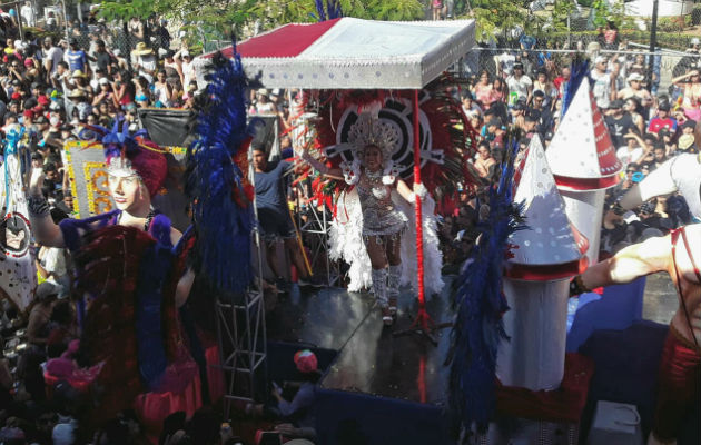Pasadas las tres de la tarde, realizaron su ingreso las reinas de Calle Arriba y Calle Abajo de Chitré, quienes izaron juntas la bandera de la fiesta de Momo para el Nuevo Año.