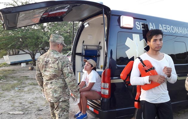 Personal del Servicio Nacional Aeronaval y de Cuerpo de Bomberos lograron auxiliarlos y trasladarlos a la costa sanos y salvo. Foto/Eric Montenegro
