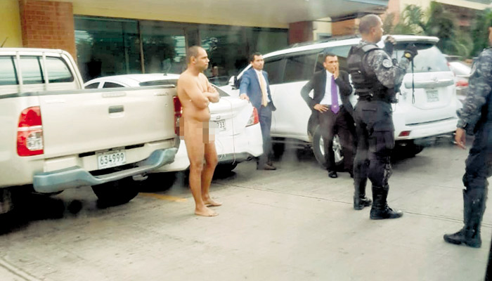 Aún desnudo, el hombre fue sacado del salón donde se desarrolló el evento y puesto a órdenes de las unidades policiales.