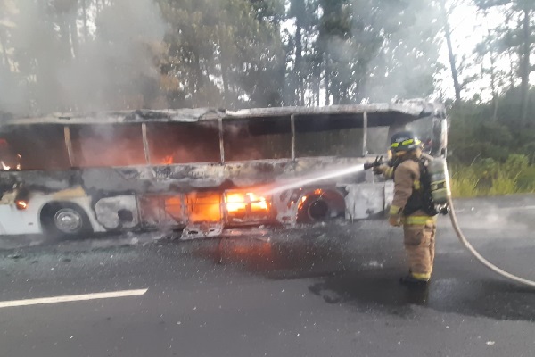 Investigan las causas que provocaron el incendio del bus de la ruta Darién-Panamá. Foto. Cuerpo de Bomberos