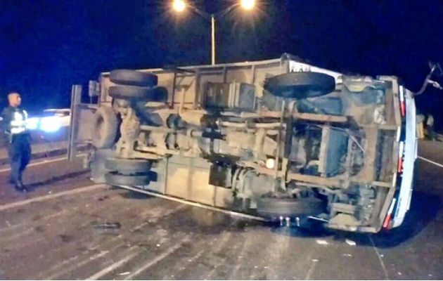 Un camión articulado se volcó en la autopista Arraiján-La Chorrera cerca al puente del hospital Nicolás Solano en dirección hacia La Espiga.