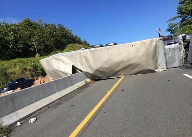 Se vuelca camión articulado en la Loma del Zorro en el sector de Las Vueltas de David
