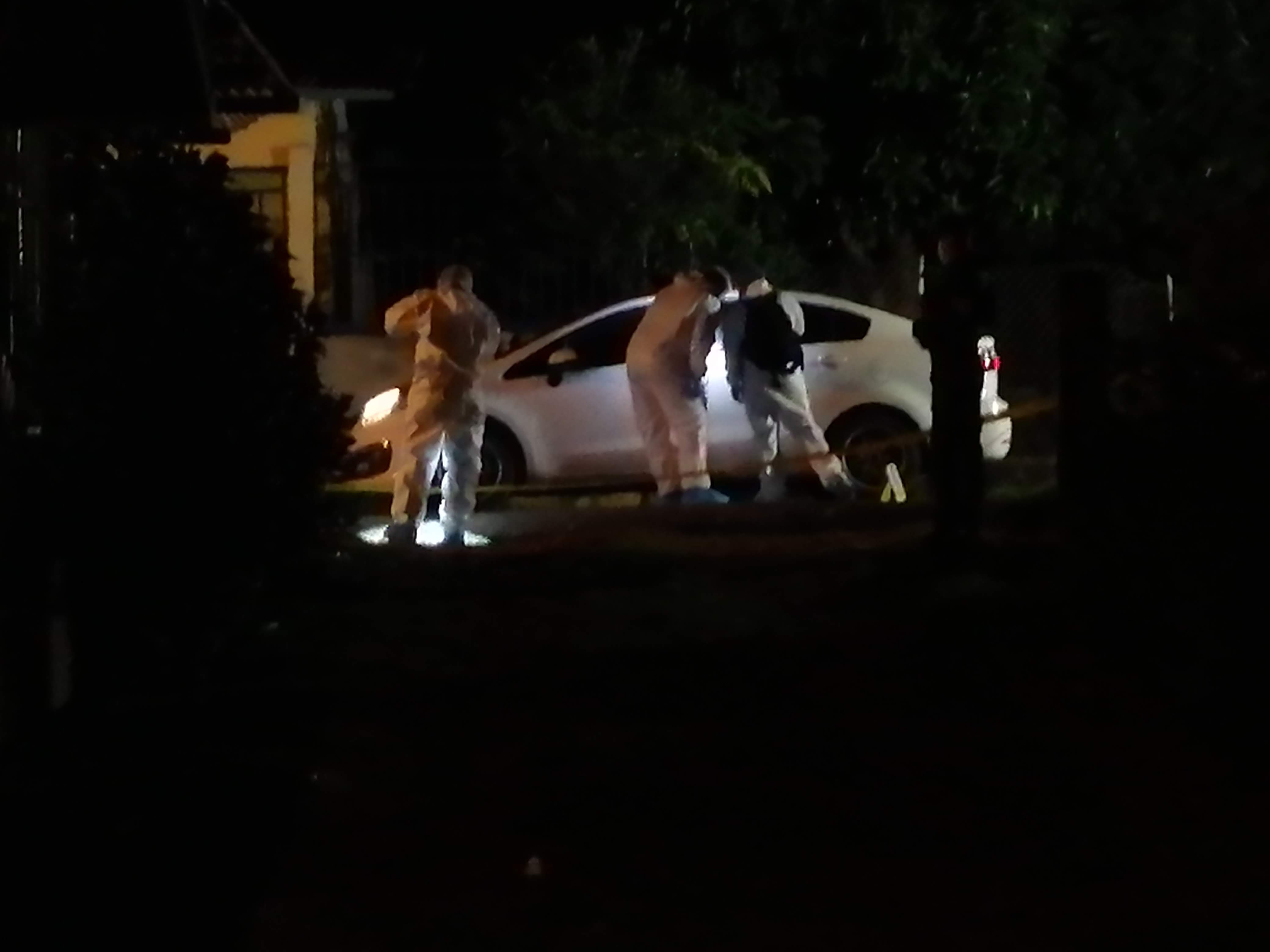 Los primeros indicios y testimonios apuntan a que un automóvil, color negro, se acercó al vehículo modelo sedan, color blanco, en el que se encontraba la pareja, y luego se escucharon múltiples disparos con arma de fuego.