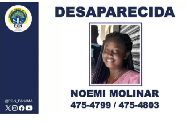 Noemí Molinar, de 16 años de edad, fue vista por última vez el 14 de febrero del presente año en el sector de Villa del Caribe, en el corregimiento de Cristóbal Este, Colón, donde vive con su familia.