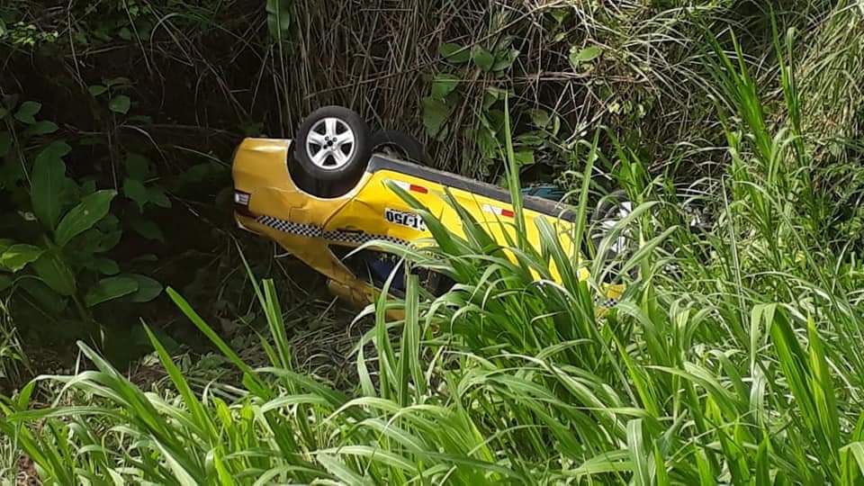 Un taxi que transitaba por la calle interna de la comunidad de Santa Rita Arriba, terminó la tarde del lunes, en un precipicio.