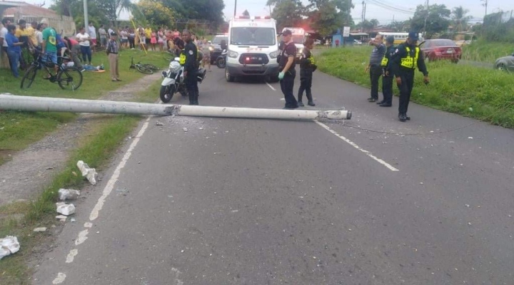 Se desconoce si las tres personas resultaron heridas por la caída del poste del tendido eléctrico que quedó sobre la acera y parte de la vía o si fueron atropelladas.