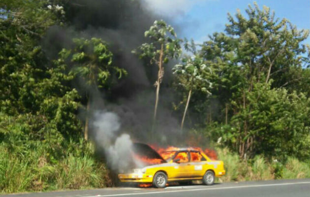 Tremendo susto se llevó el chófer de un vehículo taxi en el sector de San Juan en San Lorenzo, en el oriente chiricano la tarde de este domingo. El hecho se registró cuando el taxista de un vehículo Sedán observó como el automóvil empezó a presentar desperfectos mecánicos y posteriormente una gran cantidad de humo empezó a salir del área del motor. Pasaron pocos minutos cuando el vehículo quedó totalmente envuelto en llamas a orillas de la vía Interamericana en San Juan, provincia de Chiriquí, por lo que inmediatamente procedieron a llamar a unidades del Cuerpo de Bomberos, quienes llegaron al lugar y lograron controlar el siniestro. Las pérdidas del auto fueron totales debido a que fue consumida completamente; sin embargo, no se registraron víctimas que lamentar producto del hecho. Unidades de los "camisas rojas" pidieron a los conductores y propietarios de vehículos, estar al día con los revisados de los automóviles y que las mismas se realicen de forma adecuada, así también cuando se le realiza algún tipo de modificación a los automóviles.