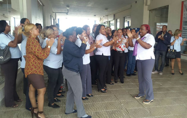 Trabajadores de la Caja de Seguro Social (CSS) protestan por el desborde aguas servidas en las instalaciones, ubicadas en el edificio Millenium.