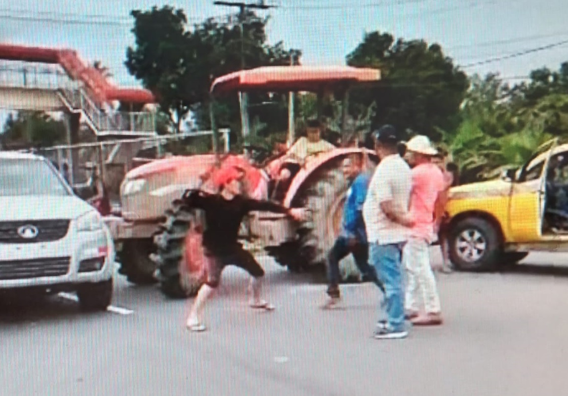 Los hechos se dieron durante el cierre de un grupo de transportistas donde el conductor de un vehículo particular, molesto por el impedimento del paso, sacó un machete agrediendo a uno de los manifestantes.
