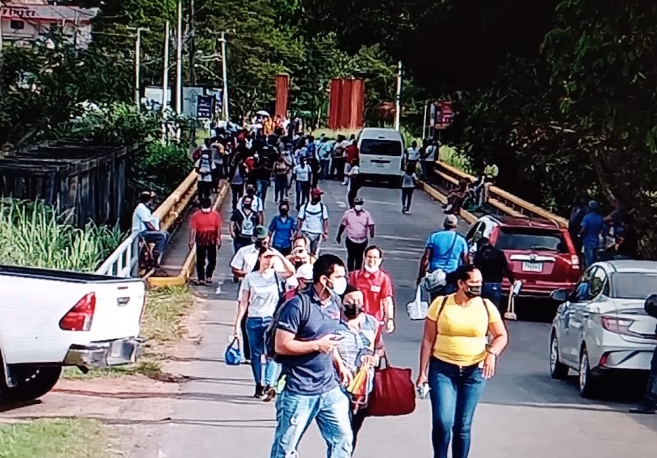 El tranque de la vía este jueves obligó a cientos de personas a caminar. Foto: Eric A. Montenegro