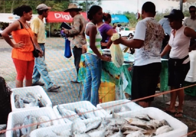 Una decena de hombres y mujeres participan en actividades económicas realizadas en el muelle La Azucarera del Puerto Pedregal, con el inicio de este evento que se desarrollará hasta el próximo domingo 17 de abril.