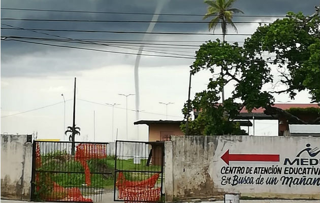 El fenómeno atmosférico inició como una tromba marina y tocó tierra, por el lado del puerto de la CCT en Coco Solo. Fuentes de Protección Civil dijeron que hasta el momento no se habían reportado daños materiales, ni víctimas.