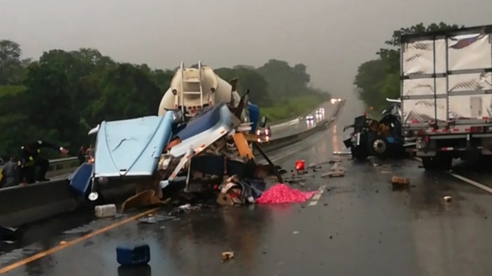 Uno de los articulados transportaba cemento y el otro mercancía seca cuando colisionaron. Foto/Mayra Madrid