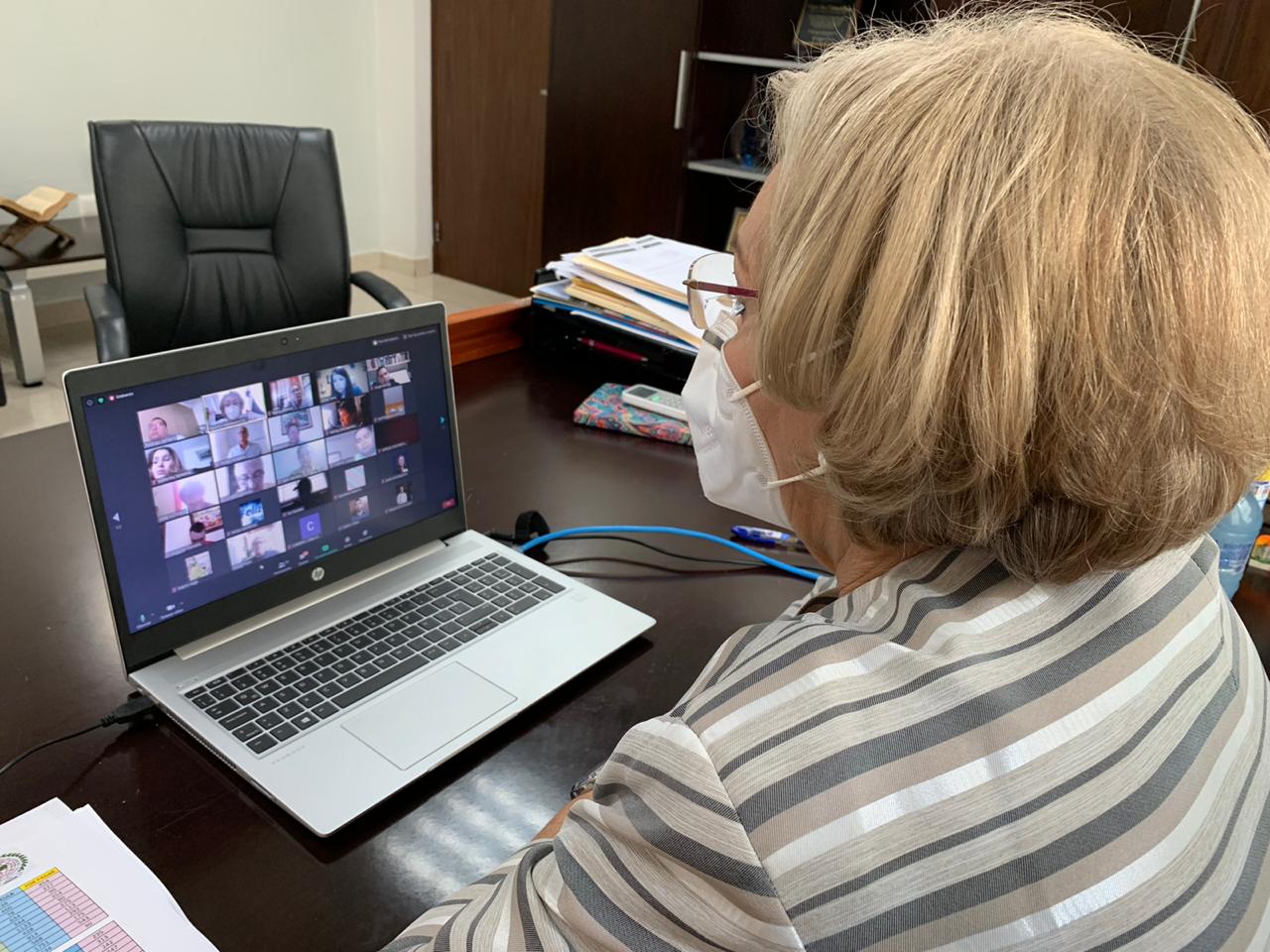 Sin embargo también estamos haciendo toda gestión posible para que nuestros docentes estén preparados para atender las necesidades de los estudiantes y evitar el contacto social”, puntualizó la Rectora.