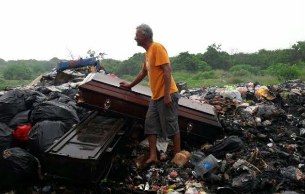 Los desperdicios de basura llegan a la entrada del vertedero, incluso se observa hasta cajones de personas fallecidas en el lugar.