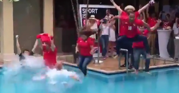 Pues como Panamá anotó su primer gol en Rusia y su país ganó, le tocó darse un chapuzón en la alberca de la sede diplomática.