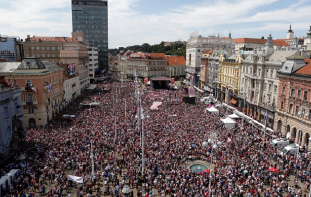 Durante varios horas, a baja velocidad, el vehículo recorrió los 20 kilómetros desde el aeropuerto de Zagreb hasta la céntrica plaza Ban Jelacic, donde decenas de miles de personas esperaban a los jugadores para un gran festejo.