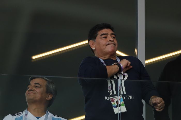 El ex astro argentino es embajador de la FIFA y asistió al debut del seleccionado de su país en un sector VIP del estadio junto a otro grupo de ex futbolistas conocidos como “Leyendas de la FIFA”.
