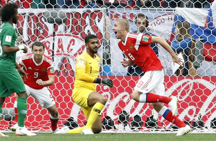 Para entonces, con Golovin como gran factor desequilibrante, ya mandaba en el encuentro y en el resultado. Un centro del zurdo del CSKA permitió a Yuri Gazinsky, completamente solo tras la caida de un zaguero saudí, inaugurar el Mundial 2018 con un preciso testarazo al que no pudo responder Abdullah Al-Mamuaiouf.