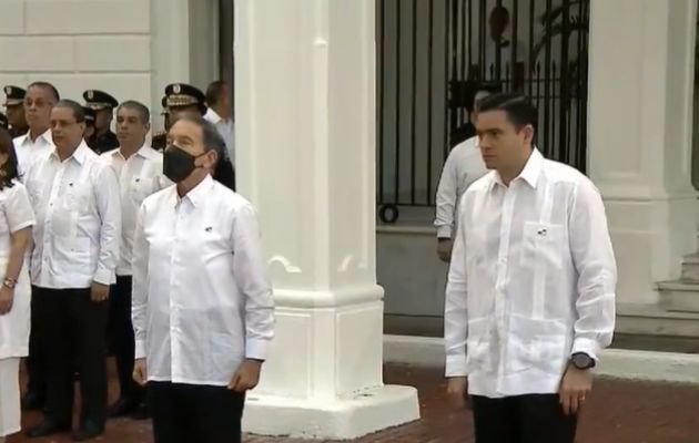Cortizo izó el pabellón frente al Palacio de Las Garzas y seguido fueron entonadas las notas del Himno Nacional interpretado por la Banda Republicana.