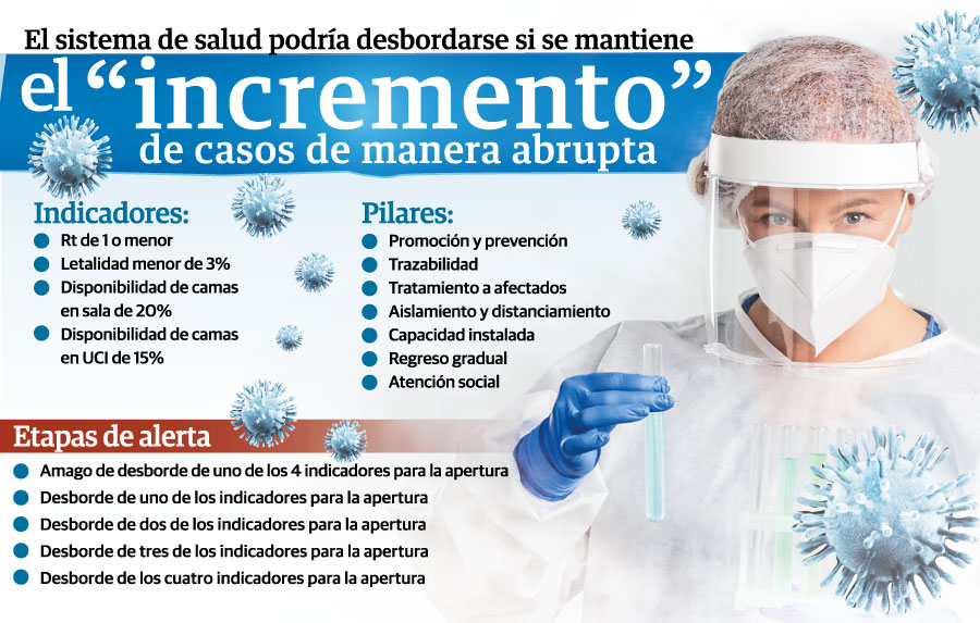 Aunque la posibilidad de retornar a la fase de cierre total está latente, en caso que desborden los cuatro indicadores utilizados para la apertura, la evaluación asimétrica del comportamiento de la COVID-19 y el control de las "áreas calientes", son algunas de las acciones que se deben tomar antes de llegar al extremo.