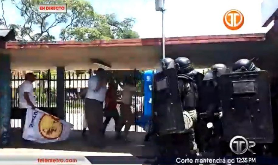 Los estudiantes, por segundo día consecutivo, cerraron la vía Transístmica a la altura de la Universidad de Panamá, mientras que Unidades Antimotines llegaron para despejar la vía.