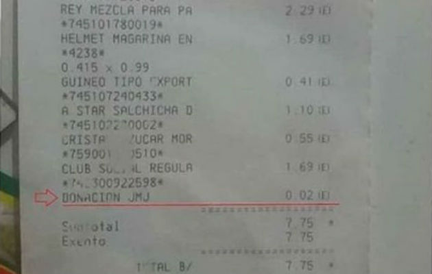 El Comité Organizador Local aclaró este jueves, que los aportes que recauda una cadena supermercados a beneficio de la Jornada Mundial de la Juventud (JMJ Panamá), es voluntario.