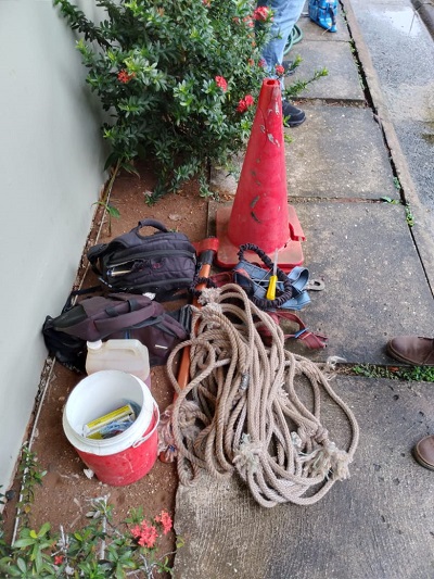 En el lugar se decomisó una motosierra y otros artículos como sogas, arneses, lonas y combustible.