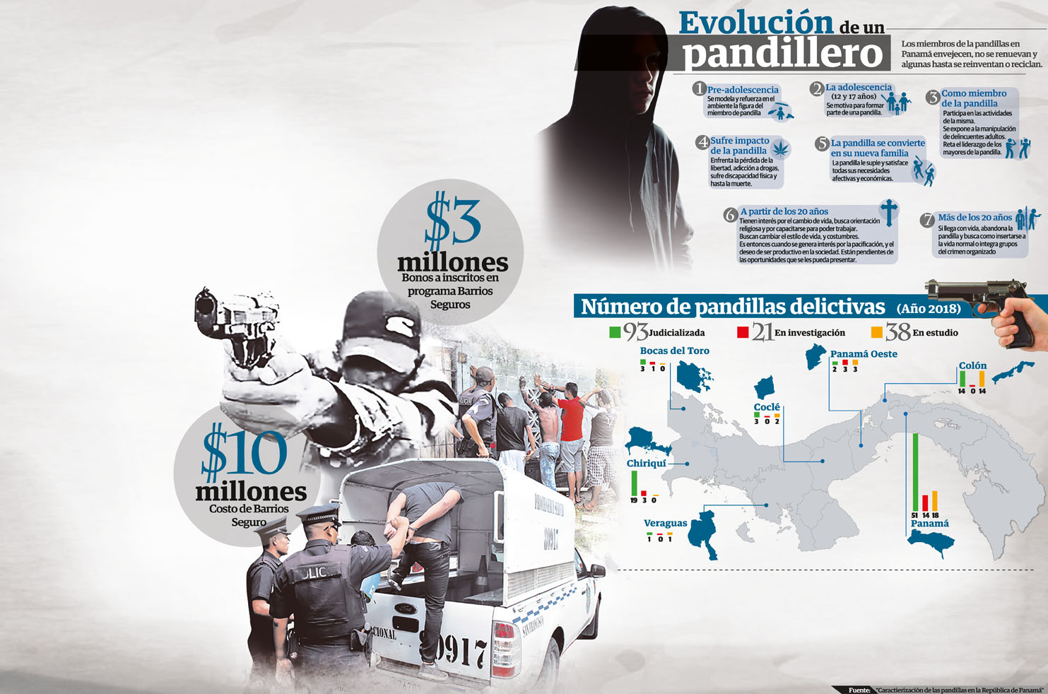 El programa Barrios Seguros estaba dirigido a intervenir a 192 pandillas identificadas al 2014, con unos 5 mil integrantes de edades entre 8 y 29 años, la mayoría dedicada a delitos como secuestro, robos, tráfico de drogas y extorsión, mientras que para 2018, el Sistema Nacional Integrado de Estadísticas Criminales (Siec) registró 152 pandillas, de las cuáles 93 se reportaron como judicializadas.