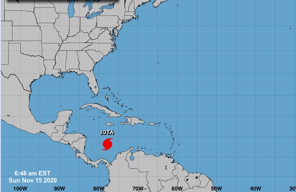 El Centro Nacional de Huracanes advirtió que Iota continúa fortaleciéndose rápidamente sobre el suroeste del Mar Caribe y se espera que traiga vientos potencialmente catastróficos.