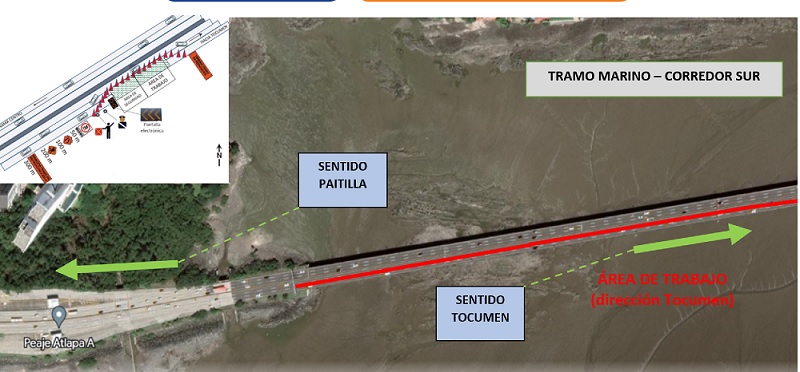 En área donde se trabajará es en el tramo hacia Tocumen, que quedará reducido a un solo carril para los vehículos, mientras se desarrollan las labores.