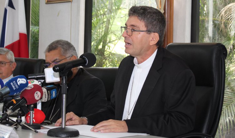 El obispo de Colón y Guna Yala, y secretario de la Conferencia Episcopal, Manuel Ochogavía, leyó el comunicado, tras concluir su Asamblea Plenaria N°.211. Cortesía