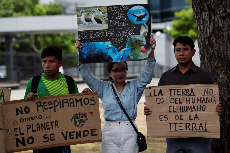 Grupos ambientalistas protestan en contra de la construcción de una terminal petrolera en Isla Boná. Foto EFE