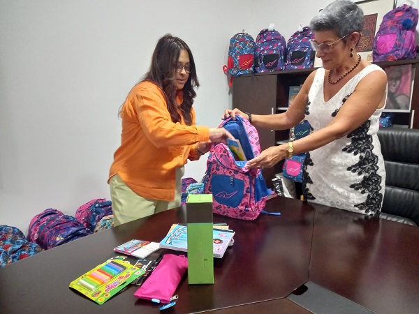 Serán 100 mochilas dotadas con varios útiles escolares y lonchera los que distribuirán los diplomáticos en cuatro escuelas. Foto: Francisco Paz