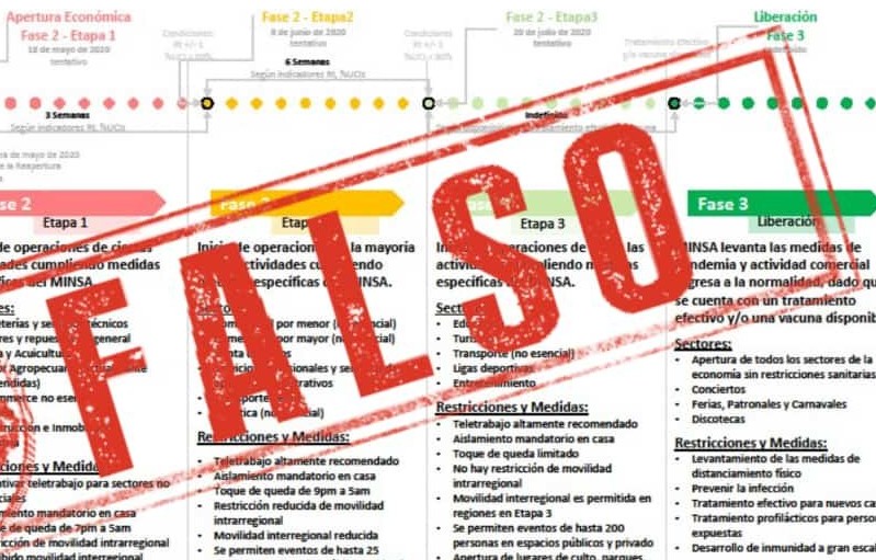 Nuevamente circula en redes sociales un documento sobre la supuesta reapertura de algunos sectores económicos tras la pandemia de COVID-19.