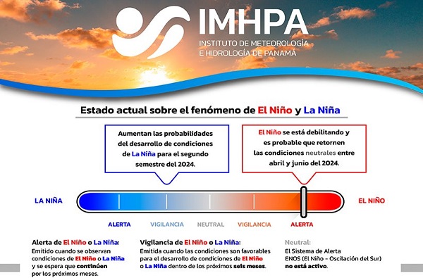 El Niño se está debilitando y podría dar paso a una estación lluviosa normal desde abril, informaron del Instituto de Meteorología e Hidrología de Panamá (Imhpa).