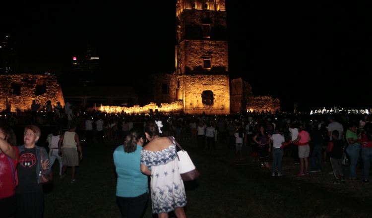 El día histórico de los 500 años de la ciudad culminó con fuegos artificiales y la iluminación de la torre de Panamá La Vieja. Foto de Víctor Arosemena