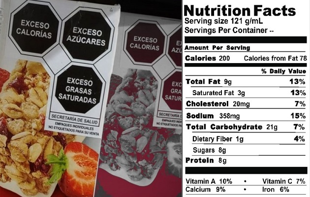 La etiqueta frontal (izq.) es más sencilla de entender para el consumidor que la general. Foto: Redes Sociales
