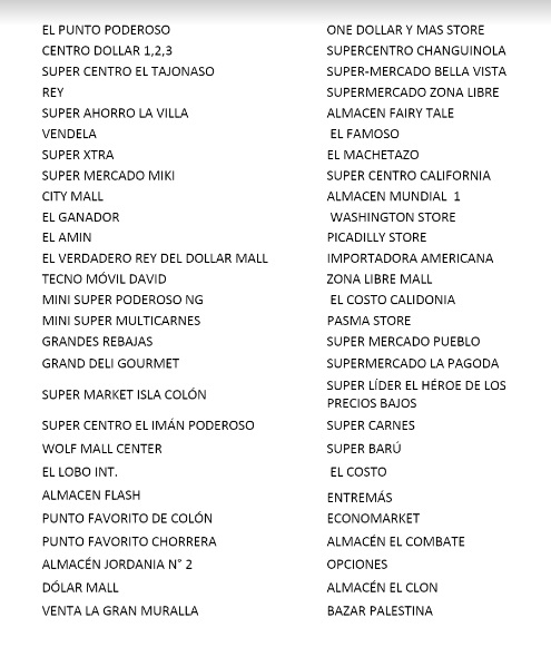 En la lista están desde grandes cadenas de supermercados, minisúper y abarroterías, ubicadas en todo el país.