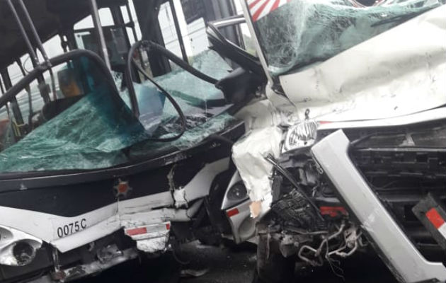 Al menos ocho personas resultaron heridas en un accidente de tránsito que se registró, hoy en la mañana, entre una unidad del Metrobús y un busito en la vía Transítimica, a la altura de San Vicente en Chilibre.